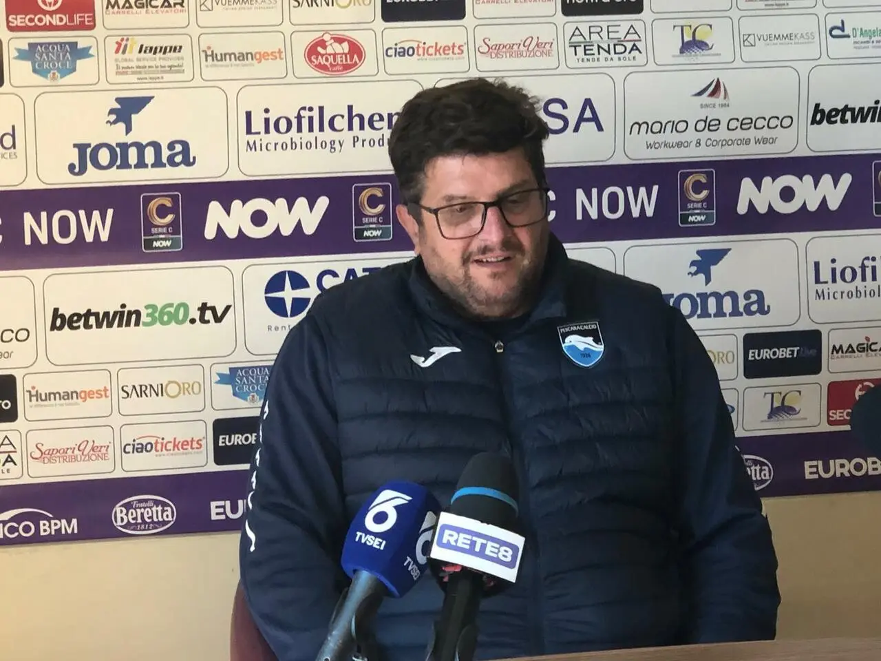 “Il rinvio con l’Arezzo? Ci è stato comunicato nel tardo pomeriggio di venerdì scorso che non giocavamo. Ed allora ho riprogrammato gli allenamenti facendo un sabato di lavoro soprattutto di corsa. Abbiamo recuperato tutti per domani, Lonardi viene in panchina ma non sarà utilizzabile. Assenti Pellacani per squalifica e Lancini per infortunio. A Pesaro facemmo la miglior prestazione di squadra però poi le sconfitte non creano entusiasmo. Con il Pineto idem all’andata. Sai cosa pensavo sorridendo? Tanto non lo faccio. Se stiamo vincendo getto un pallone in campo… Ma non lo faccio, era solo un pensiero per ridere. Il Pineto nel percorso che ha fatto ha dimostrato di aver fatto grandi cose. Anzi cose bellissime. Complimenti al presidente, al direttore all’allenatore e a tutti loro. Con un piccolo budget e hanno fatto grandi cose. Per Bruzzaniti marcature particolari? No stavo pensando di portarlo al mare quando piove. Magari prende l’influenza…. Scherzo. Lo ho avuto a Crotone, ragazzo splendido. Gli voglio bene e gli auguro di arrivare a 20 gol. Noi conosciamo il pineto, dobbiamo essere bravi a fare bene certe situazioni. in questa settimana ho visto lo spirito giusto e hai ragazzi non posso rimproverare nulla. Molti dei miei giocheranno ad alti livelli. Peccato per la sconfitta di Sestri. Prestazione offensiva nei confronti di chi ci vuole bene.E ci è successo due volte: con il Legnago e in Liguria. Professionalmente mi dà molto fastidio. Il confronto con il mio Palermo verso i play off? Fisicamente vedo grandi similitudini. Ho delle risposte molto positivi. In quel Palermo dominavamo fisicamente e con l’intensità. E serviranno anche le giocate dei nostri attaccanti. E spero non venga convocato Arena in nazionale. Titolare nel derby? Ho la tentazione. Correre è la parola chiave. Quando Lonardi? Lui mi ha detto tra 15 giorni. Merola? Può giocare sia esterno che da prima punta. In attacco faremo turnover nelle tre partite. E conto molto su di lui. Alberti è sceso tanto di peso. Viaggia sui 92 kg e ha perso 5 kg. Vuol dire che ci tiene…”