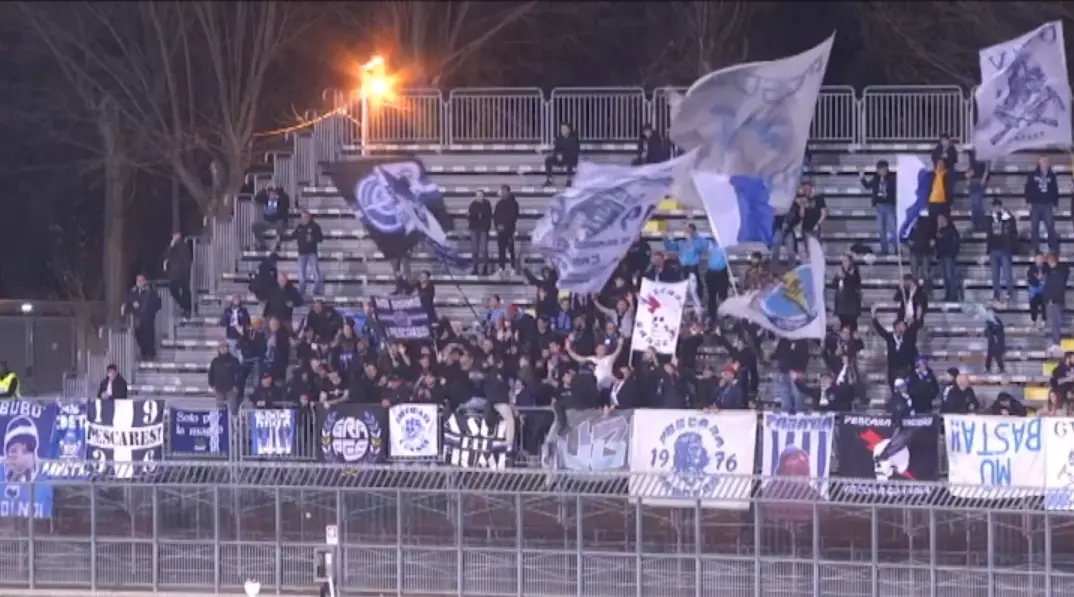 95’: l’arbitro Vergaro della sezione di Bari fischia la fine del match. Pescara batte Rimini 1-0. I biancazzurri festeggiano insieme ai quasi mille tifosi al seguito.