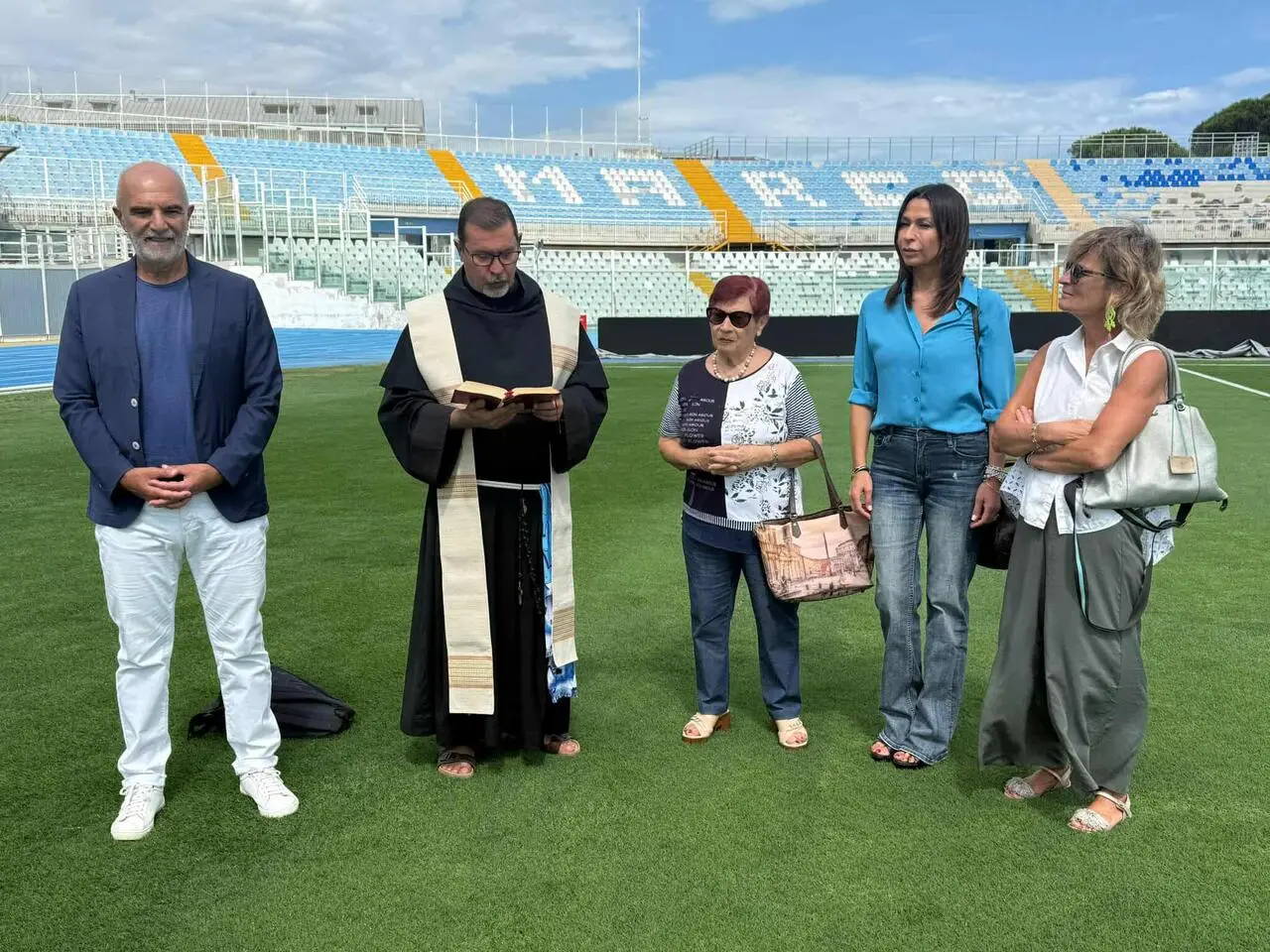 Lo stadio Adriatico è stato benedetto da padre Mauro. Presenti sindaco, assessore e presidente Donne Biancazzurre
