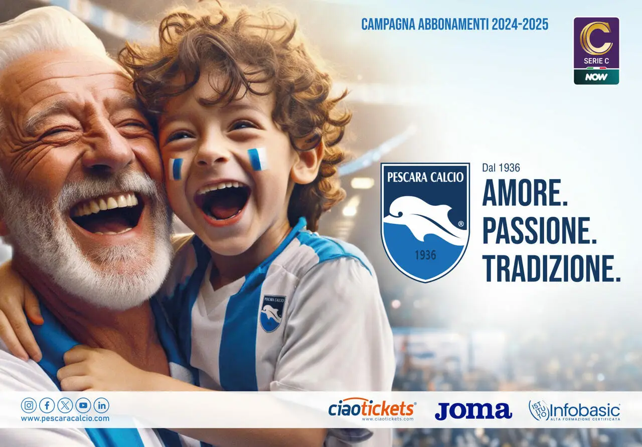 La Delfino Pescara 1936 comunica che da martedì 16 luglio, alle ore 10,00, saranno a disposizione i nuovi abbonamenti per le gare casalinghe del Pescara validi per la stagione sportiva 2024/25. La campagna abbonamenti inizierà martedì 16 luglio con una fase di prelazione, riservata in esclusiva ai possessori dell’abbonamento nella scorsa stagione 23/24.