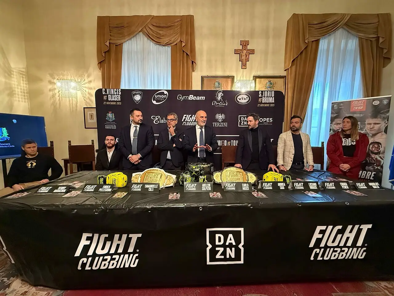 Tutto pronto a Pescara per il più grande evento di sport da combattimento della storia cittadina. Questa sera, al Pala Giovanni Paolo II, si terrà il Fight Clubbing World Championship, la manifestazione del settore più importante a livello italiano che non a caso sarà proposta in diretta da Dazn in mondovisione a partire dalle 20:30, con una copertura che arriverà a oltre 200 Paesi di tutto il mondo. Gli appassionati della boxe e, più in generale, di tutte le arti marziali potranno vedere dal vivo grandi campioni internazionali e godersi lo show introduttivo dei Sud Sound System, ospiti d'onore del grande evento. Dopo il grande successo dello scorso anno al PalaTricalle di Chieti, la manifestazione è tornata in Abruzzo a Pescara, confermando un legame ormai consolidato nel tempo e che avrà un nuovo capitolo a fine dicembre ancora nel capoluogo teatino. Ma quello in riva all'Adriatico è un antipasto a cinque stelle, data la presenza di fuoriclasse come Serhy Adamchuck, Pascal Tourè, Enrico Pellegrino e Charly Glaser e Chiara Penco, la regina delle Mixed Martial Arts. Nell'assai ricco programma ci sono ben 15 match pro di Muay Thai, K-1 e pugilato, oltre a 2 titoli del mondo in palio, per un totale di 30 fighters tra i migliori sul pianeta. E non mancano anche atleti abruzzesi, con il pugile pescarese Fabio Liberati chiamato sul ring contro l'inglese Louis Norman e il kickboxer marsicano Claudio Palenca che, dopo aver trionfato nel contest estivo, distinguendosi tra centinaia di candidati e diventando il fighter più votato d'Italia con oltre 30mila preferenze, sarà sul ring con il giovane ma promettentissimo Mirko Giannone. Si viaggia verso il sold out, con previsioni che parlano dunque di oltre duemila spettatori sui gradoni del palasport che in passato è stato teatro di grandi appuntamenti sportivi, dalle partite della Champions League del futsal con in campo anche i blaugrana del Barcellona e le gare della Nazionale italiana di pallamano. Quella di questa sera è l'edizione numero 39 del Fight Clubbing, presentato ieri a palazzo di città dall'assessore alle Politiche sociali Adelchi Sulpizio e Andrea Sagi, promotore dell'evento che ha voluto regalare al pubblico l'attesissima performance dei Sud Sound System, pronti ad infiammare l’arena con un live showcase esclusivo che porterà tutta l’energia, la storia e le radici del Salento. L’evento mira anche a promuovere il progetto sociale Universo Donna, fornendo un concreto e attivo supporto al mondo femminile lo slogan “Se vuoi fare il duro, fallo su un ring!”.