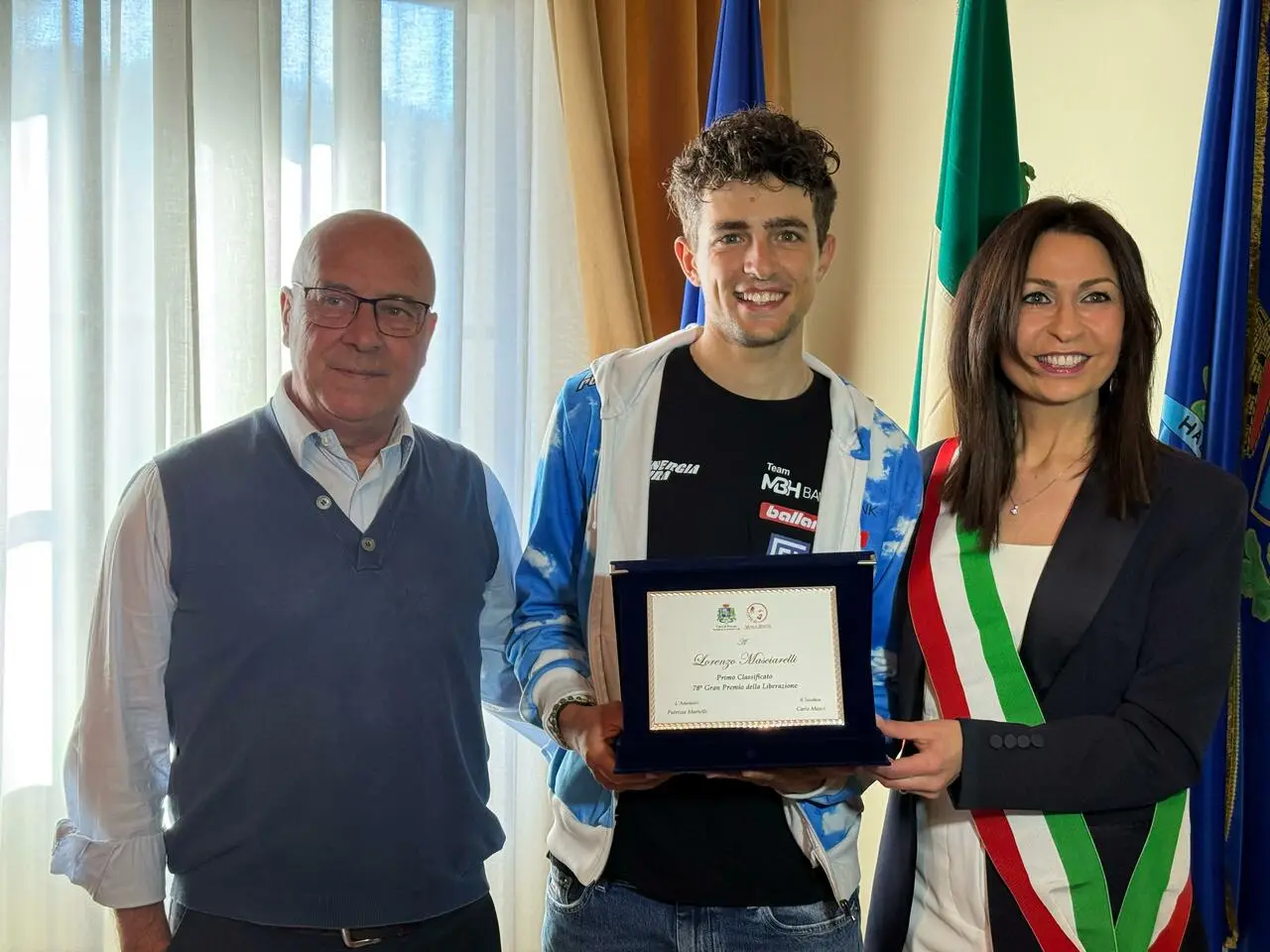 Lorenzo Masciarelli, 21 anni, è il vincitore del 78esimo Gran Premio della Liberazione, definito il“Mondiale di Primavera”. E lo ha fatto 50 anni dopo nonno Palmiro, rinverdendo i fasti di una disastia importantissima di campioni abruzzesi che ora ha un nuovo e degnissimo erede. La sua Pescara ha premiato il campione con una targa di riconoscimento, ricevuta dall'assessore comunale allo Sport Patrizia Martelli. "La tua voglia di fare, la passione che che ti accompagna in ogni allenamento sono ammirevoli", ha detto Martelli di fronte a Masciarelli, ai suoi familiari e al manager Stefano Giuliani. "Sei un figlio d'arte, che si muove sulle orme del papà e del nonno, e stai dimostrando di essere un campione incredibile, sostenuto da una famiglia fantastica che ti ha sempre seguito e supportato. Hai raggiunto un risultato straordinario, affermandoti al 78 esimo Gran Premio della Liberazione di Roma, a 50 anni di distanza da tuo nonno. Sei motivo di orgoglio per Pescara e per tutta la regione e per questo abbiamo voluto dedicarti una targa, premiando il tuo impegno e la tua passione". Giuliani lo ha definito "un giovanissimo che merita, in una regione, l'Abruzzo, che è terra di campioni". Il giovane Masciarelli ha raccontato la gara del 25 aprile e ha parlato dell'"emozione grandissima, unica" che ha provato "arrivando da solo. La gara è stata molto dura e ho sferrato l'attacco vincente a 8 km dall'arrivo. A nonno Palmiro, che ho sentito subito dopo l'arrivo, è piaciuto come ho corso, mi ha detto che sono stato bravo e per la prima volta l'ho sentito emozionato. Ho voluto dedicare questo traguardo a un amico che ho perso la scorsa estate, Simone, ci tenevo a farlo".