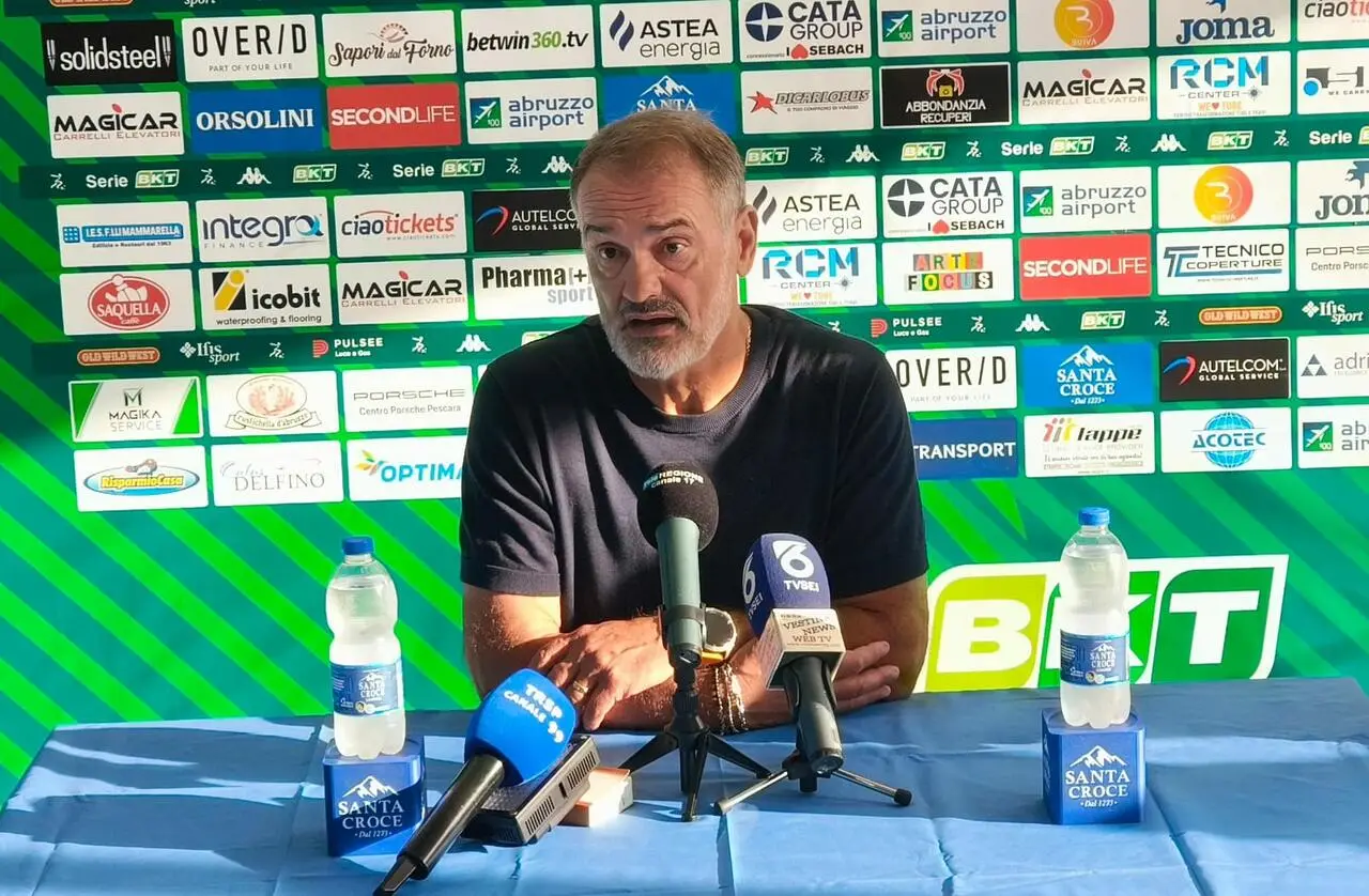 Così mister Vincenzo Vivarini in conferenza stampa: "L'analisi di questa partita è molto semplice: il Venezia ha mostrato l'impatto alla partita mettendo in evidenza le individualità, riuscivano a vincere i duelli sull'aspetto fisico. Nel primo tempo siamo partiti meno aggressivi. Il Venezia è una delle migliori squadre della B. Dobbiamo essere contenti perché abbiamo dimostrato attaccamento. Dobbiamo ringraziare i tifosi per la spinta e abbiamo trovato due gol di qualità. Pareggio meritato. Il mercato è finito e hanno giocato giocatori che hanno svolto 3 allenamenti e non hanno la miglior condizione fisica e non conoscono le giocate. Sono contento perché in questo campionato non devono mancare l'anima e lottare fino all'ultimo minuto. Dobbiamo essere coscienti di come fare i punti, sia da parte della stampa, società, tifosi e giocatori. Dobbiamo remare tutti dalla stessa parte per ottenere i punti per la salvezza. Siamo agli inizi, bisogna che tutti noi conosciamo le qualità individuali dei giocatori che abbiamo. Si vanno a conoscere nelle partite. Per chi ha fatto il ritiro ha una condizione giusta e dovranno metterlo a regime anche chi è arrivato in ritardo. Sia Di Nardo che Tsadjoud faranno tanti gol. A differenza di Mantova è avere le staffette. Di Nardo ha avuto la capacità di attaccare la porta e sono contento che stia ottenendo i frutti. Questo punto dovrà essere una lunga serie di punti che andranno fatti. I sacrifici che si fanno in settimana devono essere coronati dalla soddisfazione. Possiamo fare risultato con chiunque ma non dobbiamo abbassare la guardia. In B lavoriamo uomo su uomo, il Venezia ha lasciato molto spazio e abbiamo bisogno di un attaccante che faccia questo lavoro. Perché ci sono errori individuali? Dobbiamo andare per step: ho rimarcato l'applicazione e l'umiltà. Questi errori nascono dalla poca convinzione nel tirare fuori qualcosa in piu. Anche oggi era una palla facile da leggere. C'è bisogno di rabbia e cattiveria per esaltarci. Arriveremo a giocare tanto rispetto ad ora. Nel secondo tempo abbiamo messo giocatori tonici. Valzania ha dato peso al centrocampo. I ragazzi hanno meritato questo pareggio. Dobbiamo darci da fare e migliorare. I giocatori devono avere esuberanza ed esaltazione."