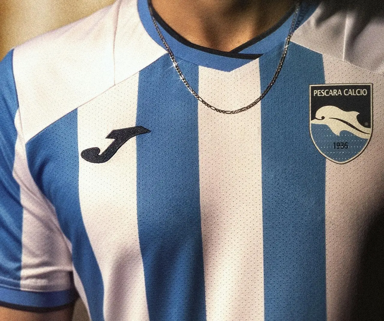 Joma e il Pescara Calcio hanno lanciato la nuova maglia home che il club indosserà nelle sfide casalinghe del campionato italiano di Serie B della stagione 2025/26. ""Stile elegante, abbinato ad una ricercatezza dei dettagli, per una maglia home che combina al tempo stesso innovazione, tradizione, performance e una visione green, determinata dall’utilizzo per la produzione di un tessuto 100% riciclato", si legge nella nota diramata. “nella maglia home spiccano l’azzurro e il bianco, i due colori del club, impressi sull’iconico design a righe verticali. La maglia è stata realizzata in tessuto jacquard che, oltre a favorire la traspirabilità, disegna sottili dettagli che impreziosiscono il prodotto finale. Il colletto è a V e di colore azzurro, con dettagli blu scuro; nello stesso colore sono stati realizzati anche i rib delle maniche. Tra i segni distintivi che contraddistinguono la maglia home troviamo il claim “Gente di Mare“, inserito in corsivo nella parte interna del colletto. Sul retro del colletto, con un transfer ad alta densità di colore dark navy, è stato inserito il nome del club: PESCARA CALCIO. Lo scudetto del club, collocato come da tradizione sul petto, è stato rivisitato in una nuova versione in silicone tridimensionale, termo applicato per evitare possibili sfregamenti sulla pelle e migliorare ulteriormente il comfort degli atleti. È composta al 100% da materiale riciclato, ottenuto da bottiglie in PET”.